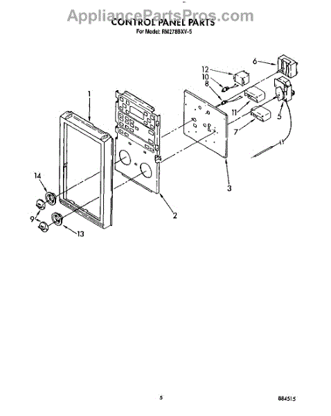 Parts for Whirlpool RM278BXV5: 04 - Control Panel Parts