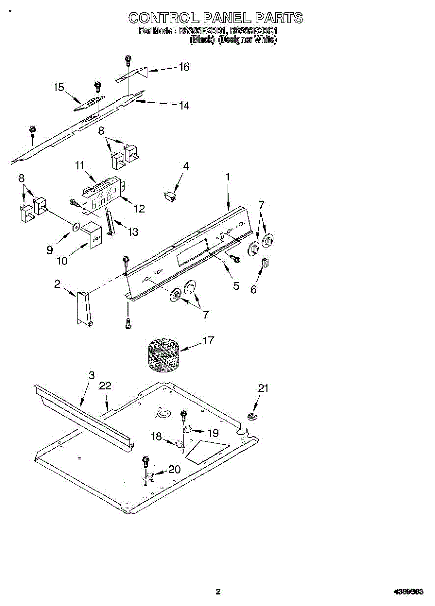 Parts for Whirlpool RS386PXBQ1: 02 - Control Panel Parts