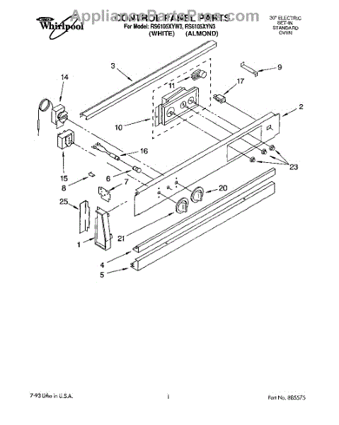 Parts for Whirlpool RS6105XYN3: 01 - Control Panel Parts