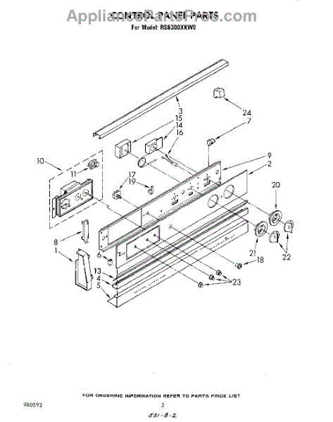 Parts for Whirlpool RS6300XKW0: 02 - Control Panel Parts