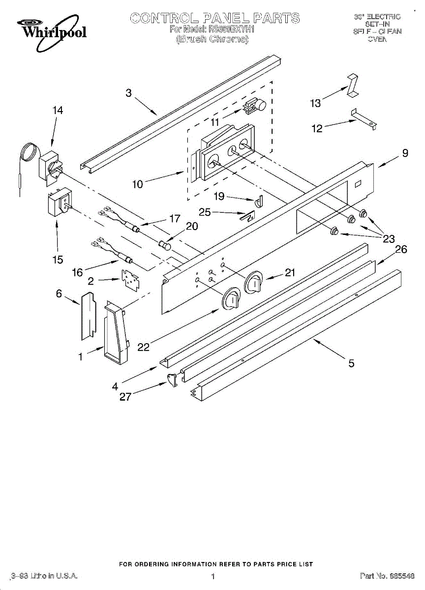 Parts for Whirlpool RS660BXYH1: 01 - Control Panel, Literature Parts