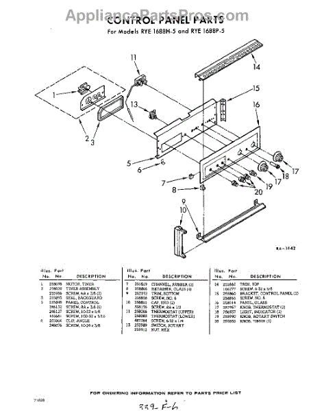 Parts for Whirlpool RYE1688W5: 06 - Control Panel Parts