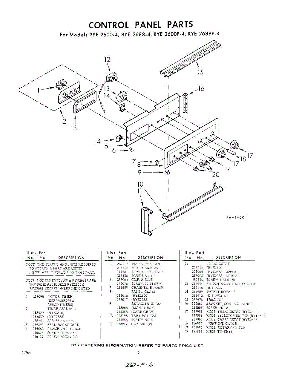 Parts for Whirlpool RYE26004: 06 - Control Panel Parts