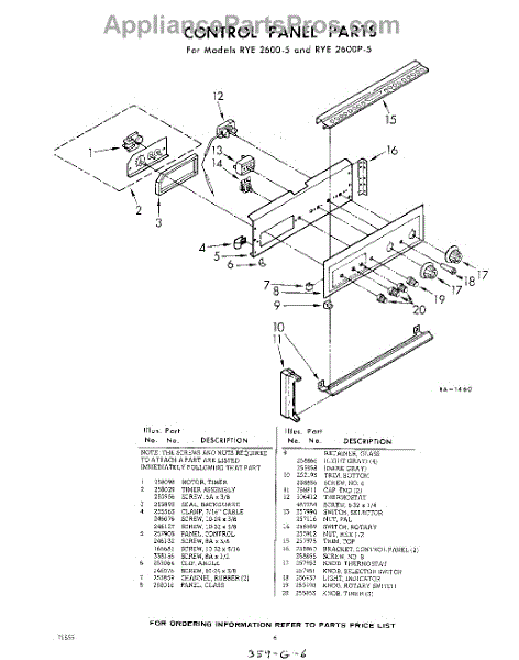 Parts for Whirlpool RYE2600W5: 06 - Control Panel Parts