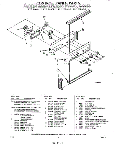Parts for Whirlpool RYE2688W2: 06 - Control Panel Parts
