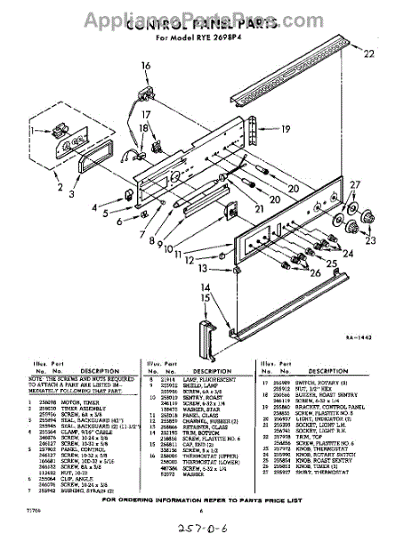 Parts for Whirlpool RYE2698P4: 06 - Control Panel Parts