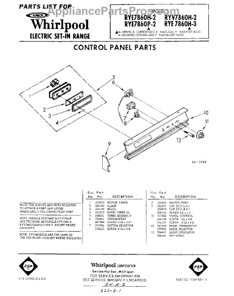 Parts for Whirlpool RYE7860W2: 01 - Control Panel Parts