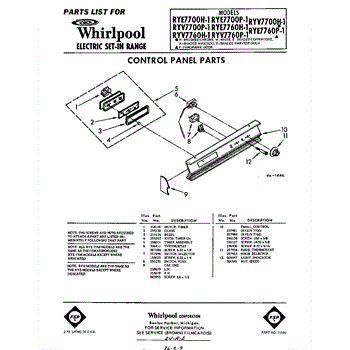 Parts for Whirlpool RYV7760H1: 01 - Control Panel Parts