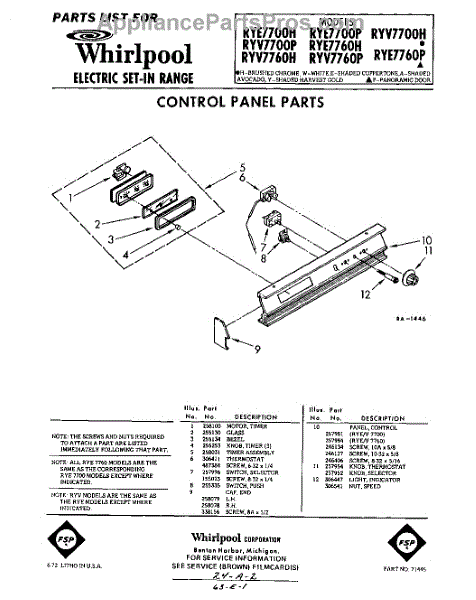 Parts for Whirlpool RYV7760P: 01 - Control Panel Parts