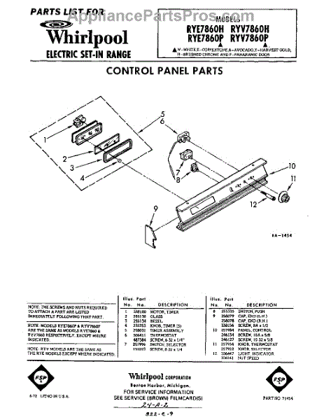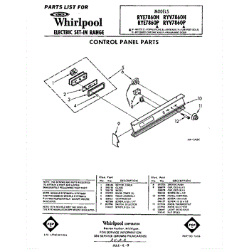 Parts for Whirlpool RYV7860P: 01 - Control Panel Parts