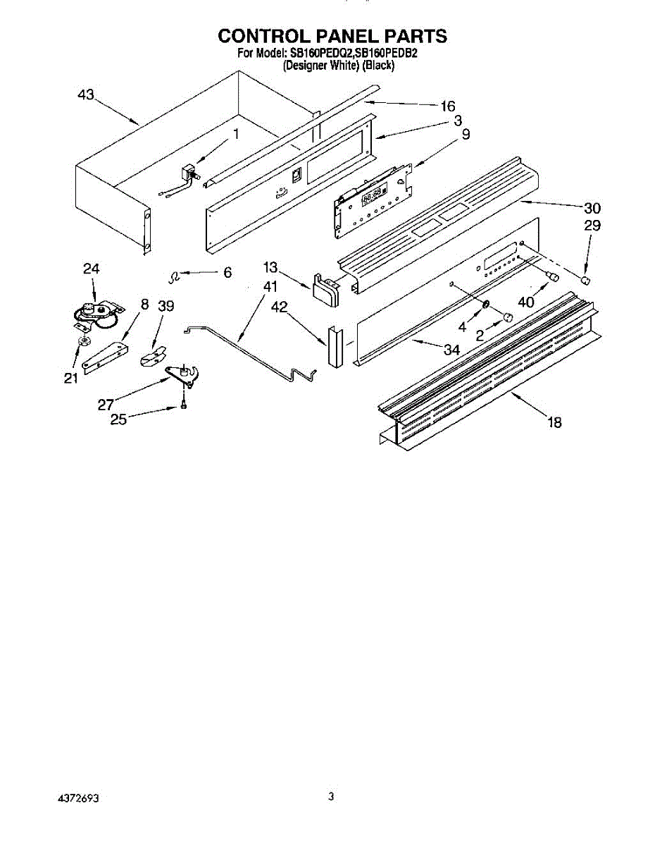 Parts for Whirlpool SB160PEDB2: 02 - Control Panel Parts