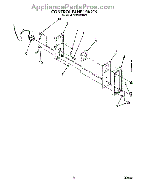 Parts for Whirlpool SE950PERW8: 10 - Control Panel Parts