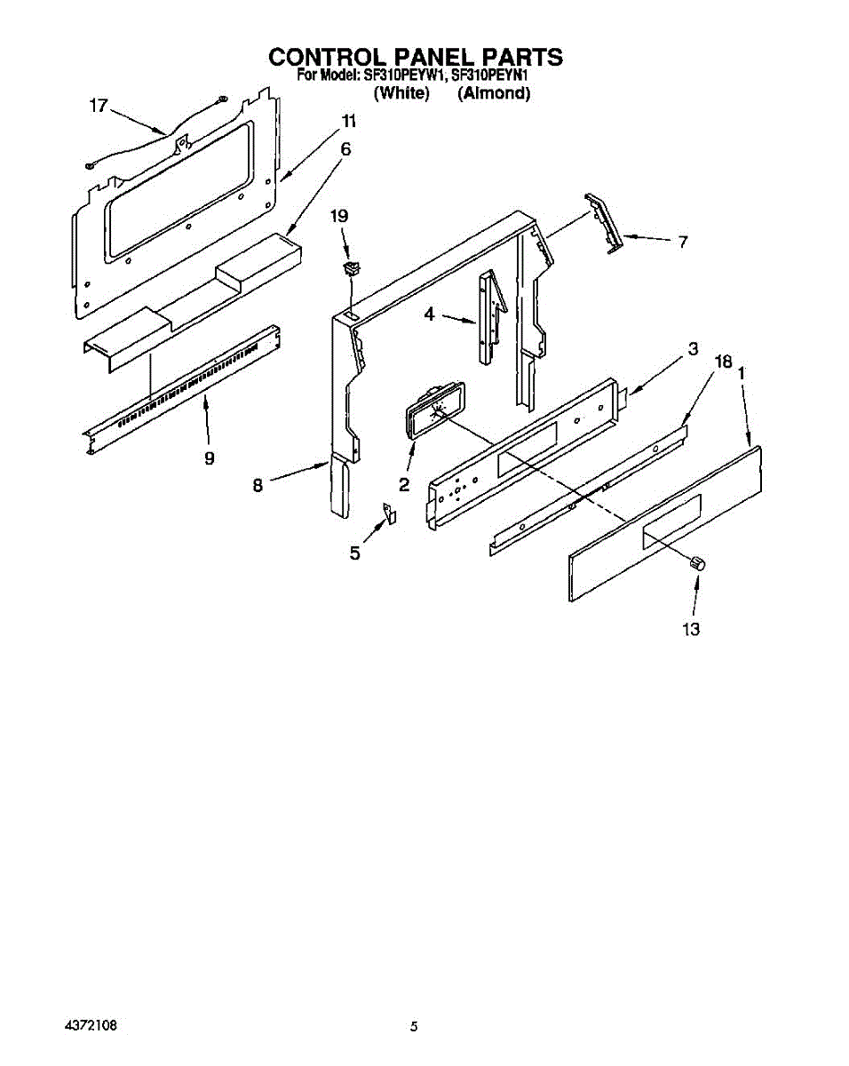 Parts for Whirlpool SF310PEYN1: 04 - Control Panel Parts