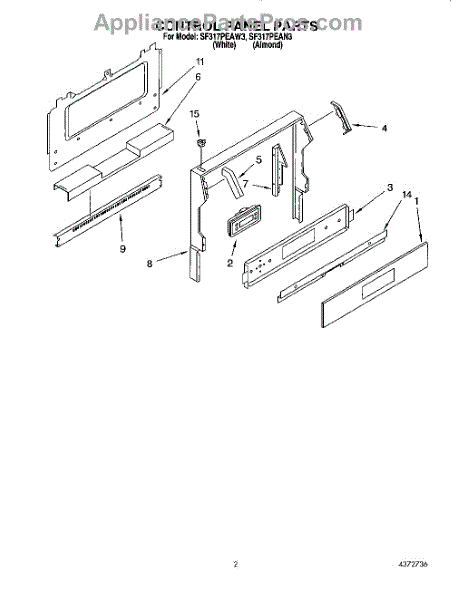 Parts for Whirlpool SF317PEAW3: 02 - Control Panel Parts