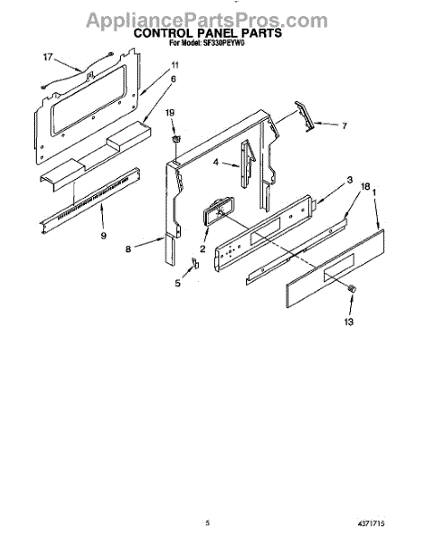 Parts for Whirlpool SF330PEYW0: 05 - Control Panel Parts
