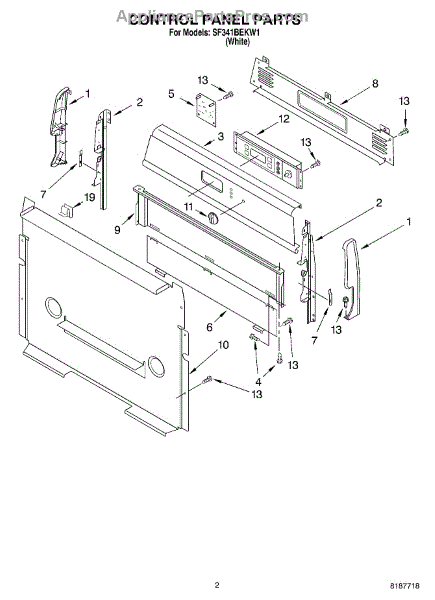Parts for Whirlpool SF341BEKW1: 02 - Control Panel Parts