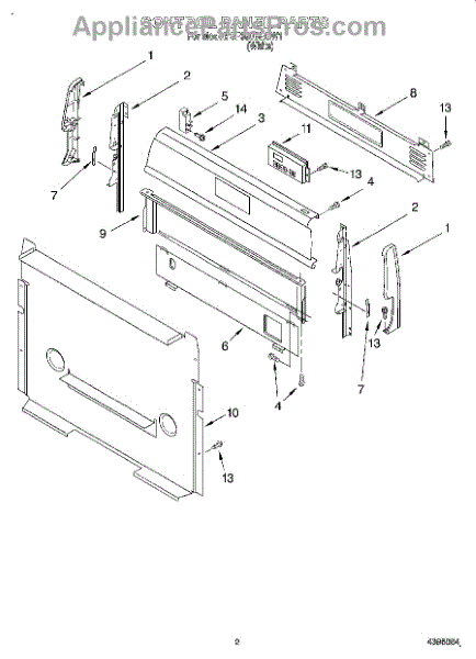 Parts for Whirlpool SF350BEGW1: 02 - Control Panel Parts