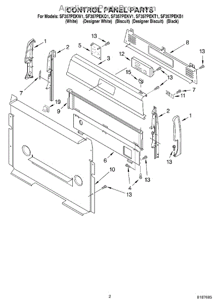 Parts for Whirlpool SF357PEKT1: 02 - Control Panel Parts