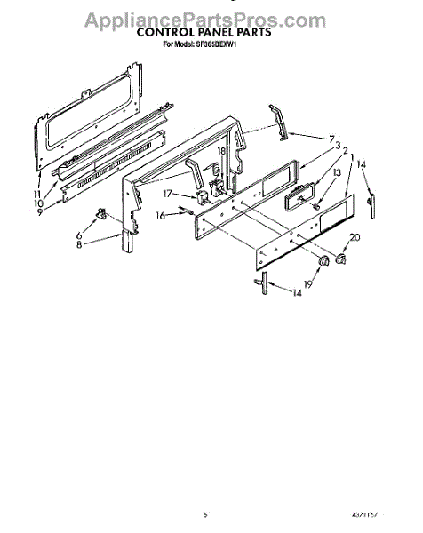 Parts for Whirlpool SF365BEXN1: 05 - Control Panel Parts