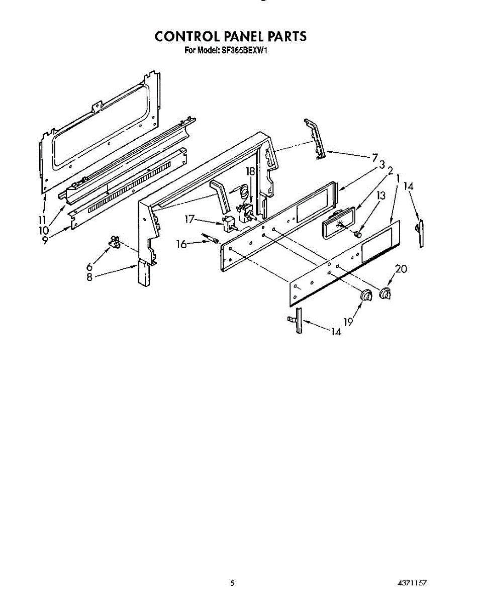 Parts for Whirlpool SF365BEXW1: 05 - Control Panel Parts