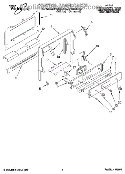 Parts for Whirlpool SF365BEYN4: 01 - Control Panel Parts
