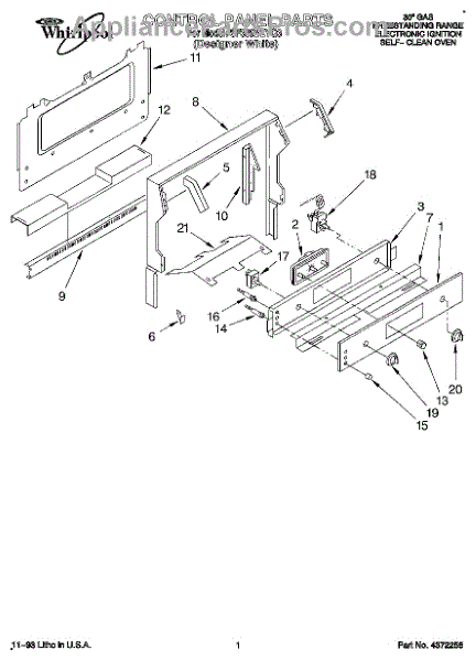 Parts for Whirlpool SF365BEYQ3: 01 - Control Panel Parts