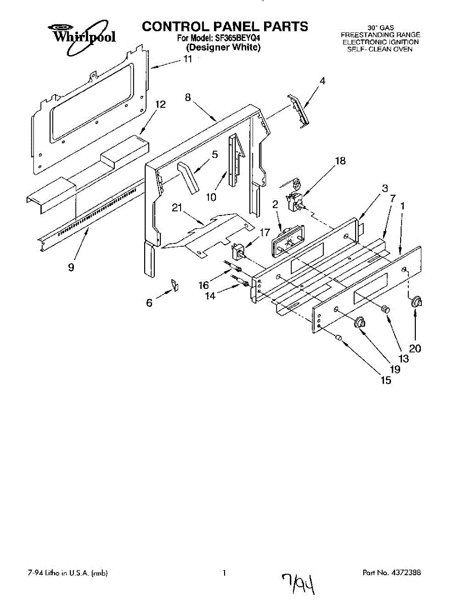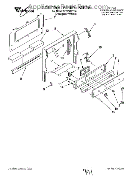 Parts for Whirlpool SF365BEYQ4: 01 - Control Panel Parts