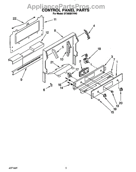 Parts for Whirlpool SF365BEYW0: 02 - Control Panel Parts