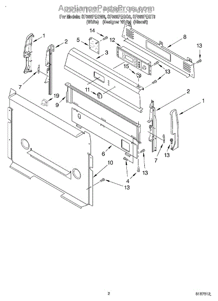 Parts for Whirlpool SF365PEGW6: 02 - Control Panel Parts