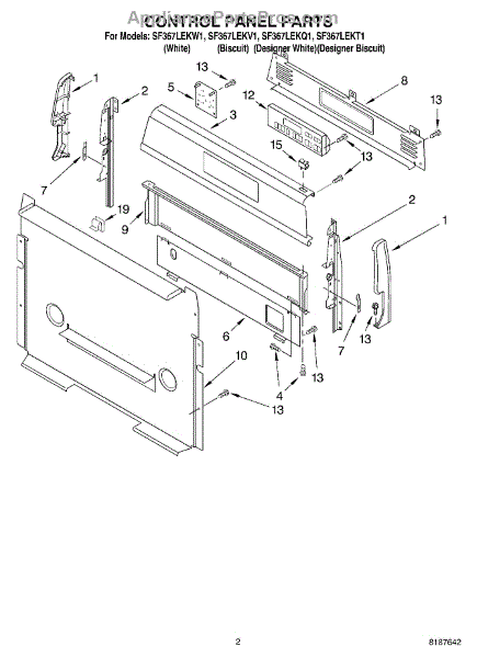Parts for Whirlpool SF367LEKW1: 02 - Control Panel Parts