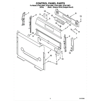 Parts for Whirlpool SF367LEMB1: 02 - Control Panel Parts