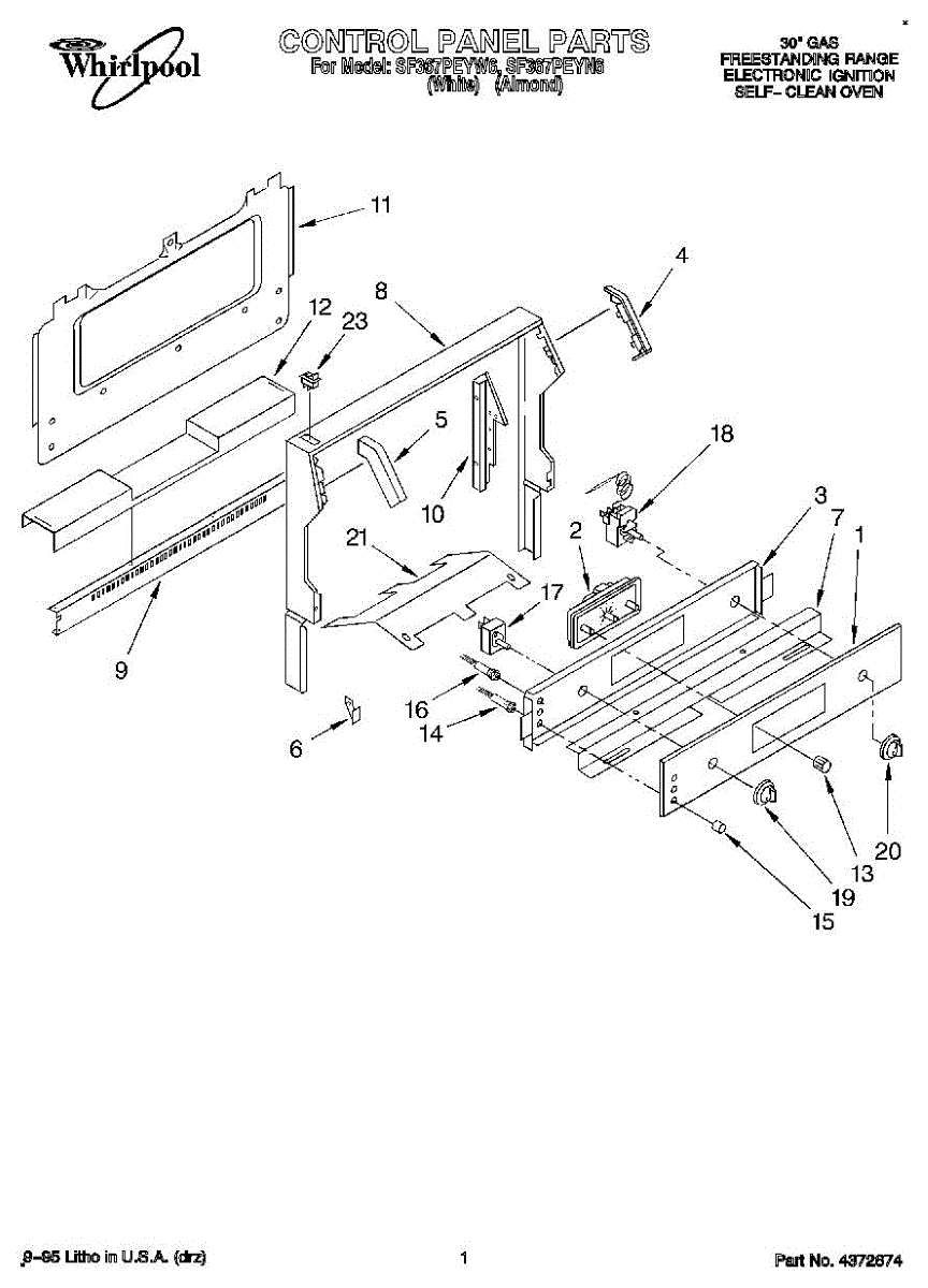 Parts for Whirlpool SF367PEYN6: 01 - Control Panel Parts