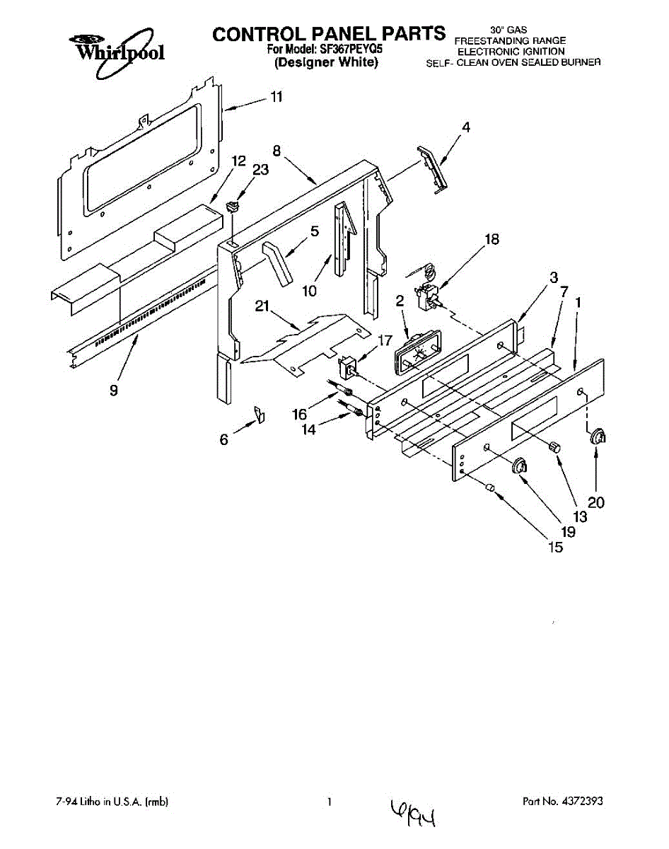 Parts for Whirlpool SF367PEYQ5: 01 - Control Panel Parts