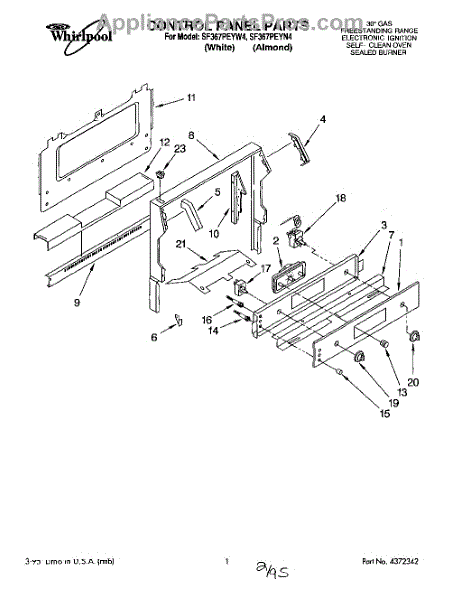 Parts for Whirlpool SF367PEYW4: 01 - Control Panel Parts