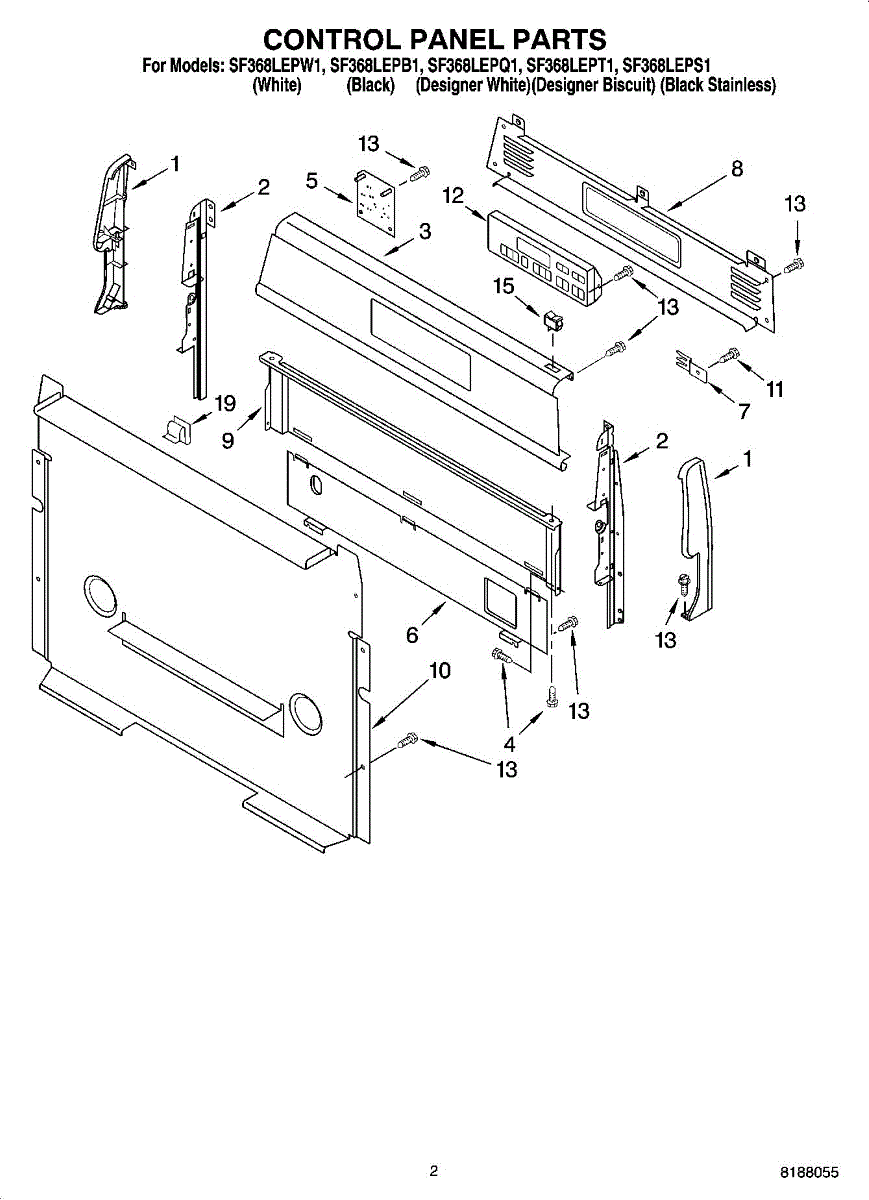 Parts for Whirlpool SF368LEPS1: 02 - Control Panel Parts