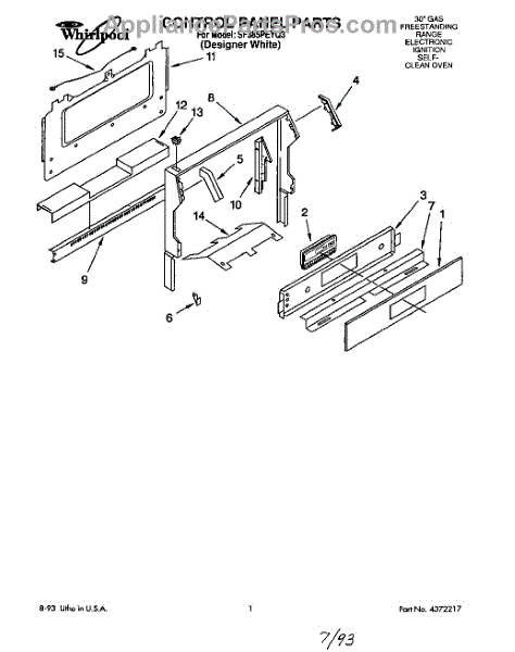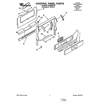 Parts for Whirlpool SF385PEYQ3: 01 - Control Panel Parts