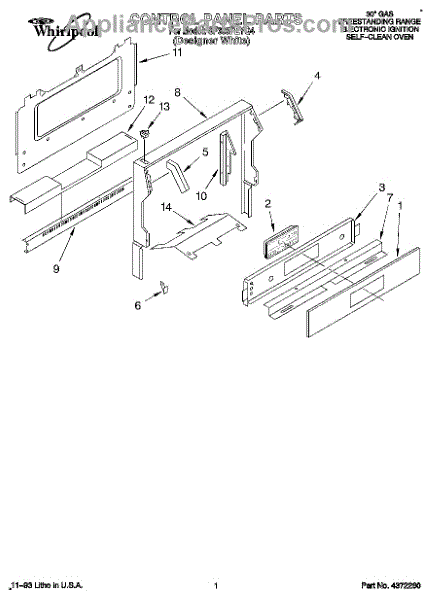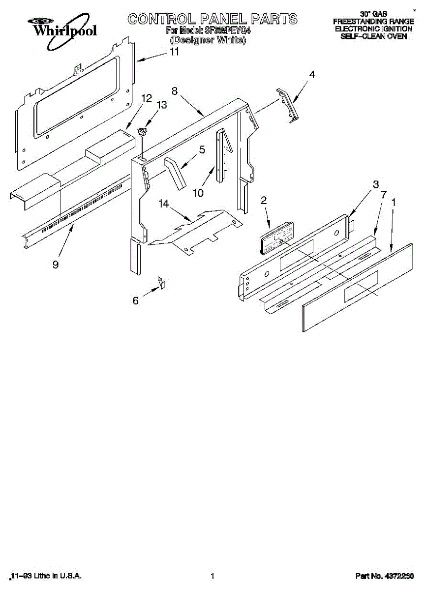 Parts for Whirlpool SF385PEYQ4: 01 - Control Panel Parts