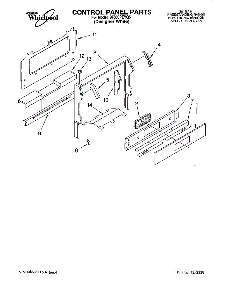 Parts for Whirlpool SF385PEYQ5: 01 - Control Panel Parts