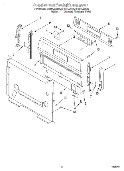 This factory screw secures appliance components to their mounting points. Replace missing, worn, or stripped hardware to restore a tight fit, proper alignment, and quieter operation across the affected assembly.