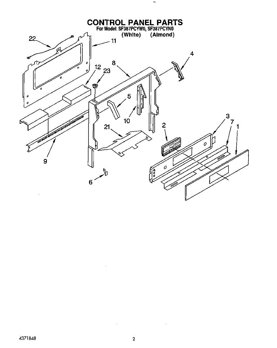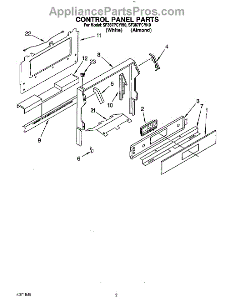 Parts for Whirlpool SF387PCYN0: 02 - Control Panel Parts