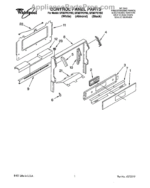 Parts for Whirlpool SF387PEYN2: 01 - Control Panel Parts