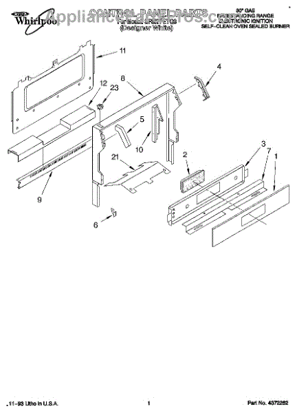 Parts for Whirlpool SF387PEYQ3: 01 - Control Panel Parts