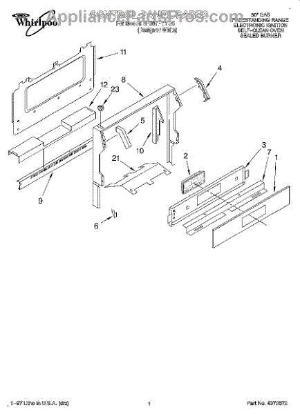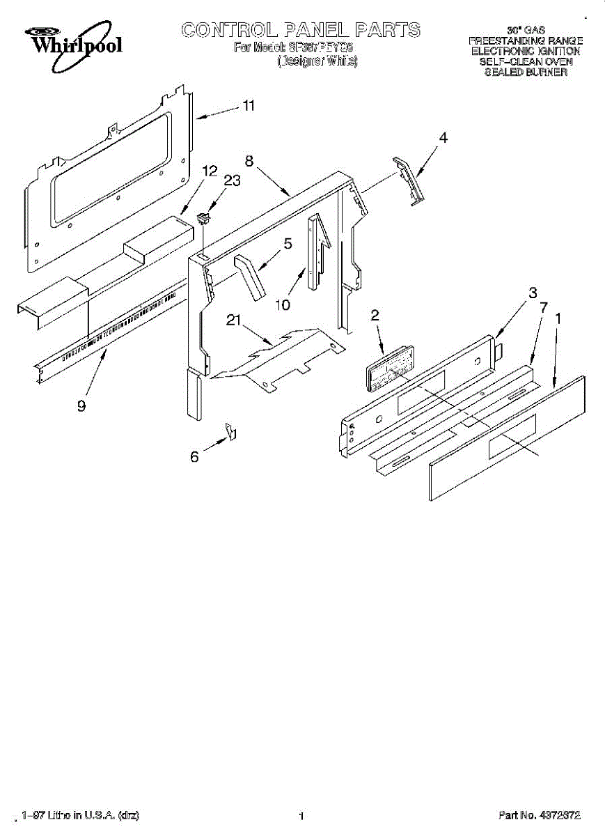 Parts for Whirlpool SF387PEYQ6: 01 - Control Panel Parts