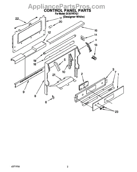 Parts for Whirlpool SF397PEYQ1: 02 - Control Panel Parts