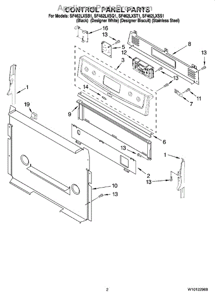 Parts for Whirlpool SF462LXSQ1: 02 - Control Panel Parts