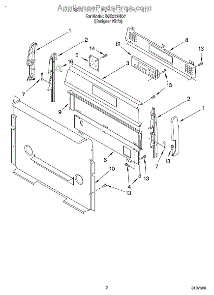 This factory screw secures appliance components to their mounting points. Replace missing, worn, or stripped hardware to restore a tight fit, proper alignment, and quieter operation across the affected assembly.