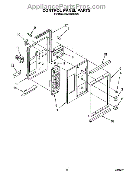 Parts for Whirlpool SM980PEYW0: 11 - Control Panel Parts