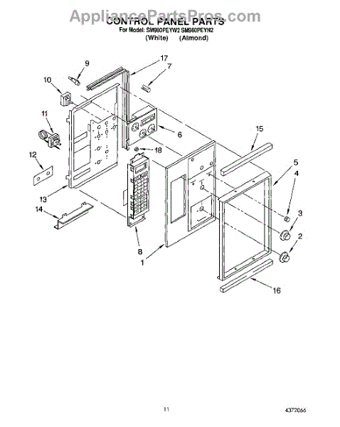 Parts for Whirlpool SM980PEYW2: 10 - Control Panel Parts