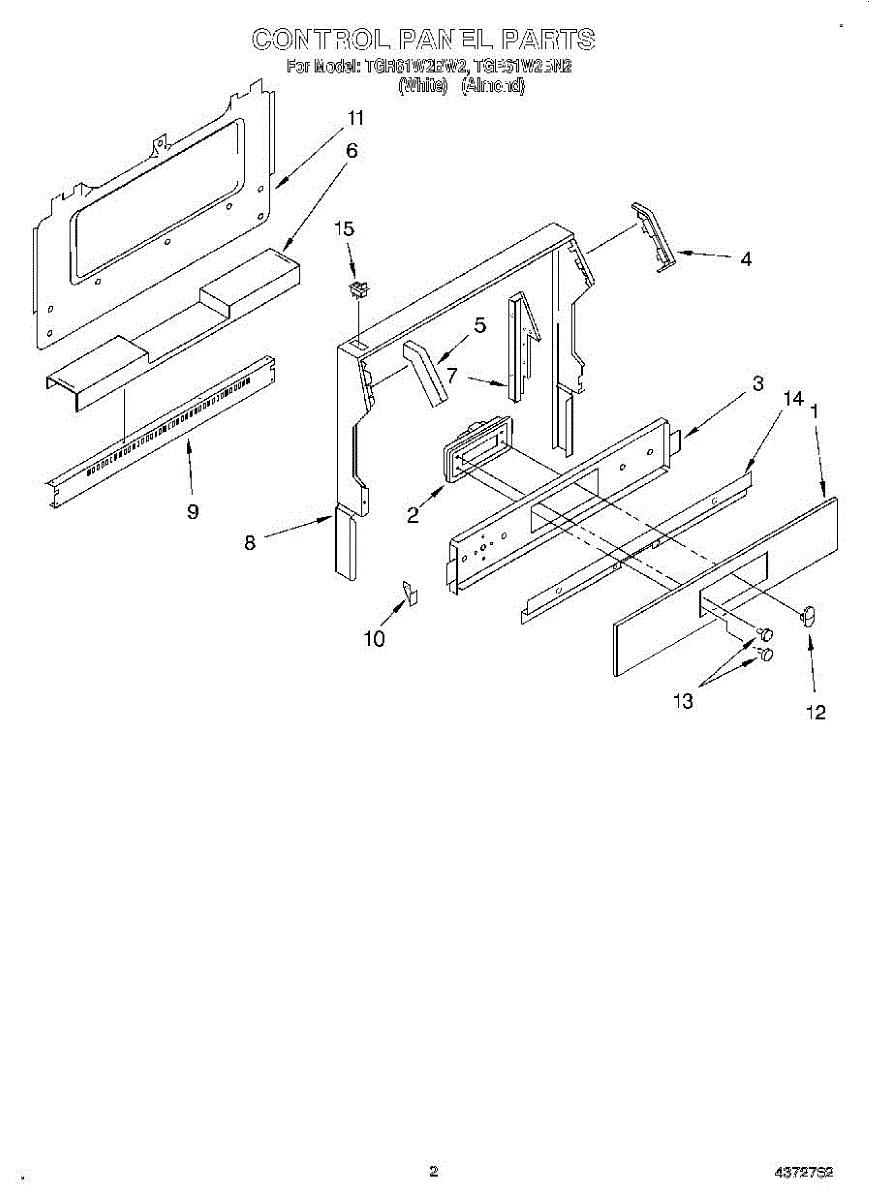 Parts for Whirlpool TGR61W2BW2: 02 - Control Panel Parts