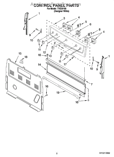 This control bracket secures the appliance control or console assembly, keeping the control board and user interface stable for reliable operation. It helps prevent loose or misaligned controls that can affect button response or display visibility. What it does: